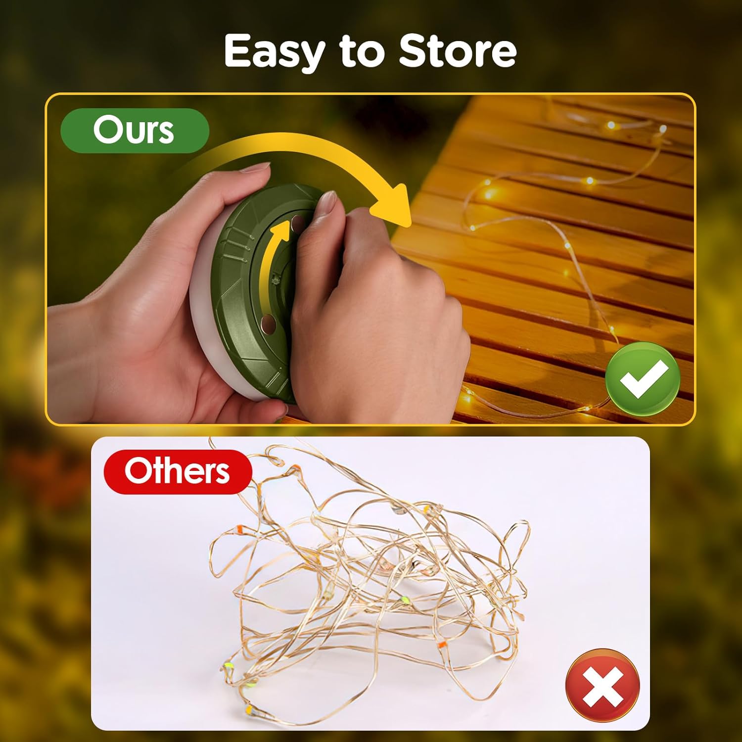 إضاءة متعددة الاستخدامات: تعمل كفانوس قوي للتخييم بالإضافة إلى سلسلة إضاءة LED تضيف لمسة جمالية.