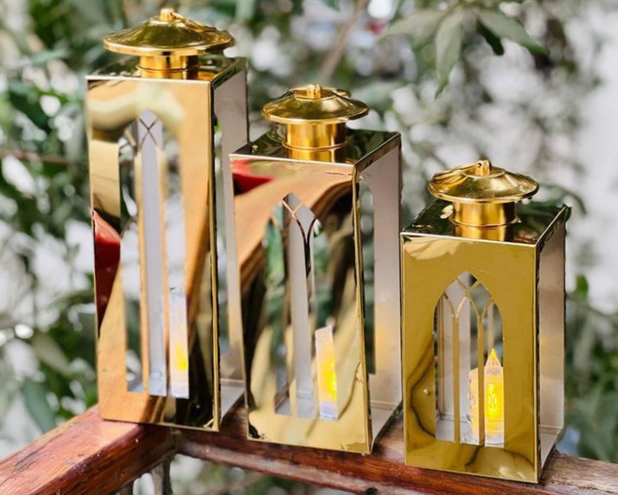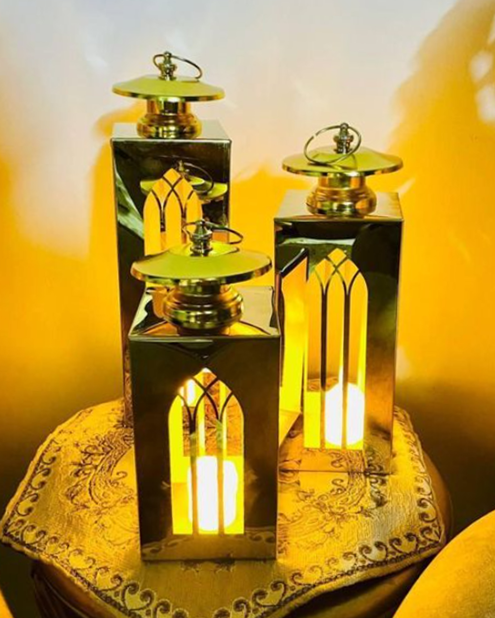 عرض فرع نور رمضان نحاس فانوس مع 3 فانوس رمضان ديكور معدني