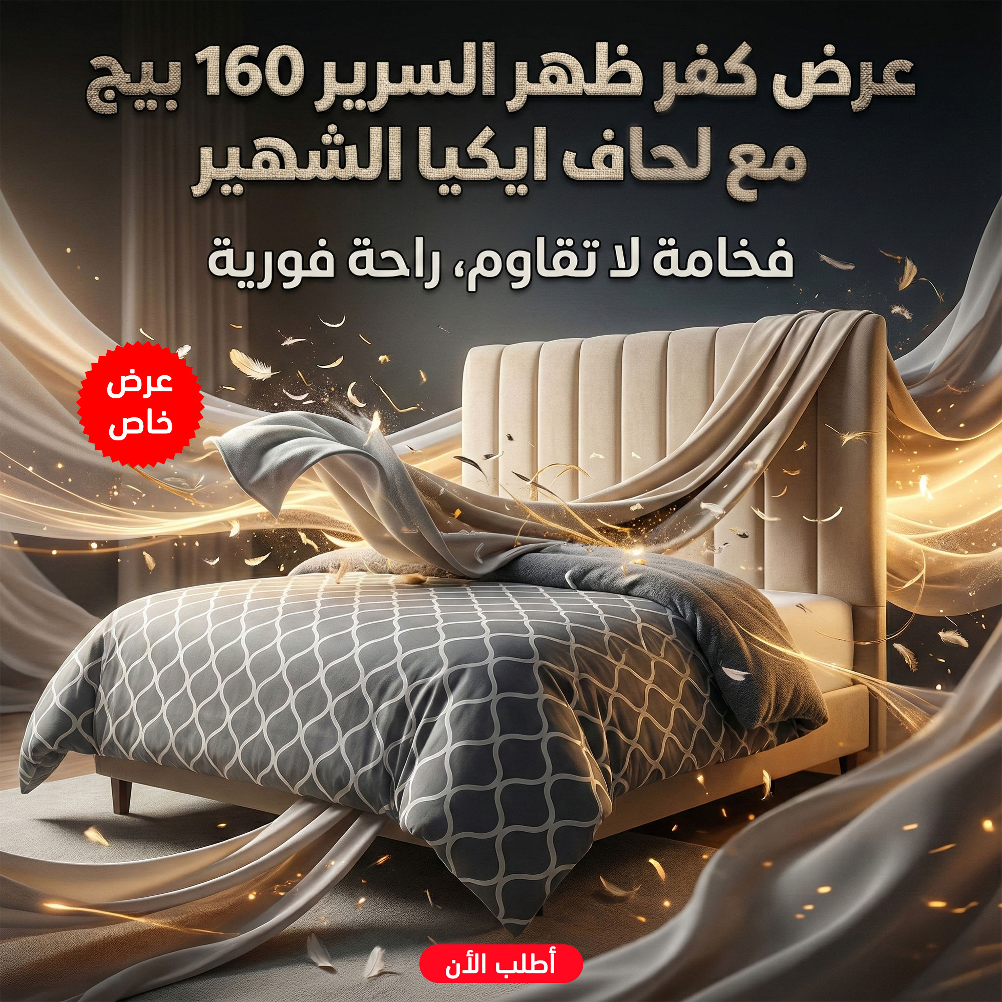 عرض كفر ظهر السرير 160 سم بيج مع لحاف ايكيا الشهير