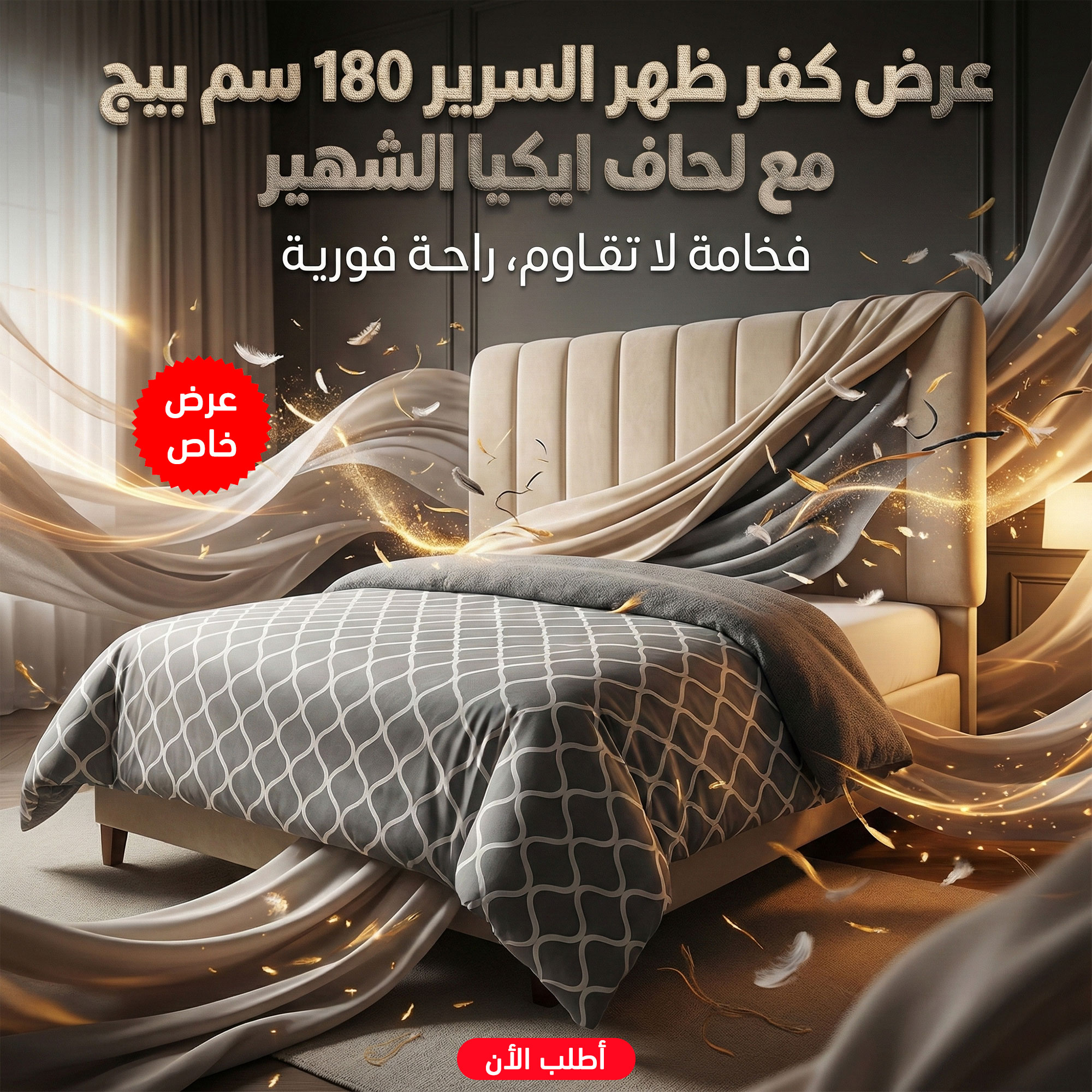 عرض كفر ظهر السرير 180 سم بيج مع لحاف ايكيا الشهير