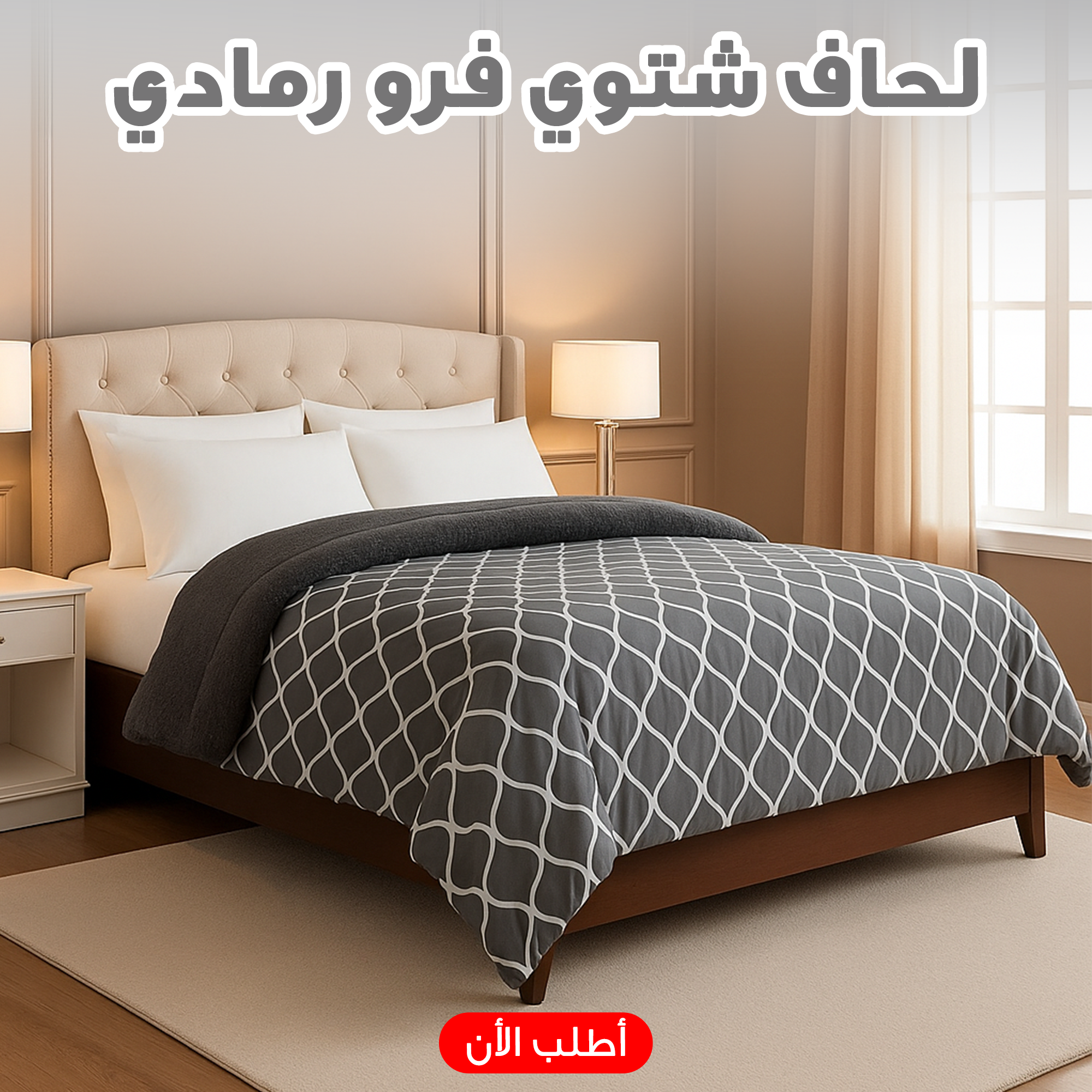 ❄️🛏️ عرض الشتاء الجامد! لحاف فرو رمادي + 4 ماسكات ملاية