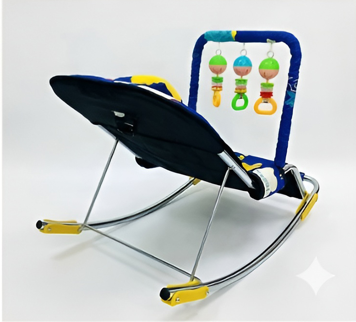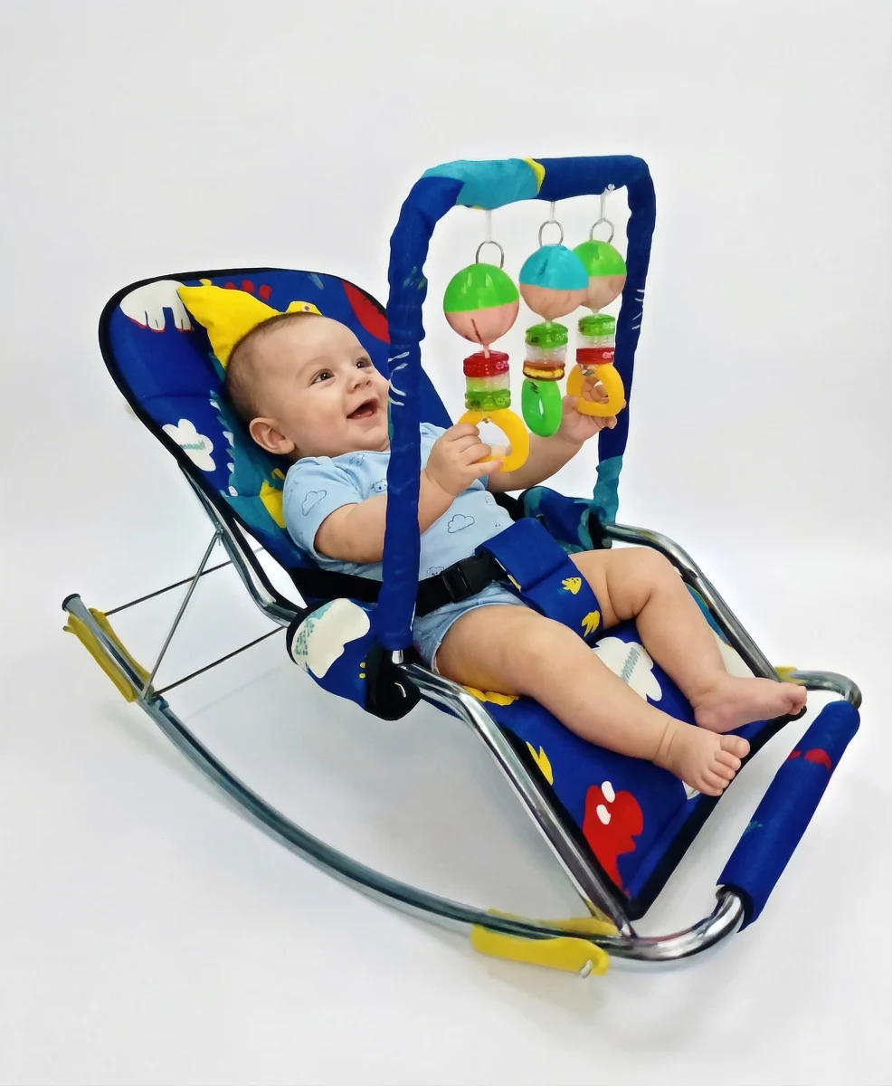 الكرسي الهزّاز الأزرق… راحة + أمان + تسلية في لحظة واحدة