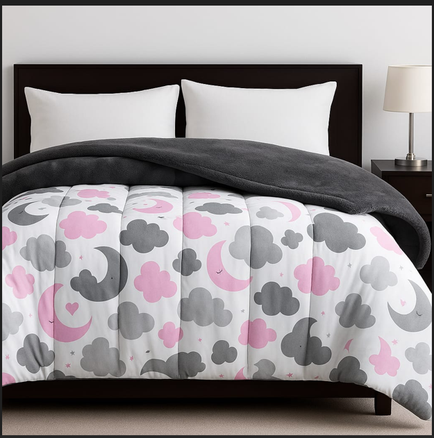 لحاف شتوي فرو رمادي نجوم و هلال 220 * 235 سم